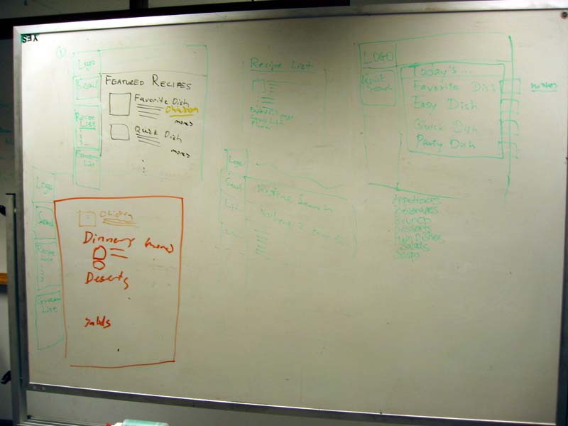 Design03 Early SketchesWe starting sketching the layout of the site which led to our wireframes. Our goal at this point was to find a way to deal with the overwhelming collection of recipes. |