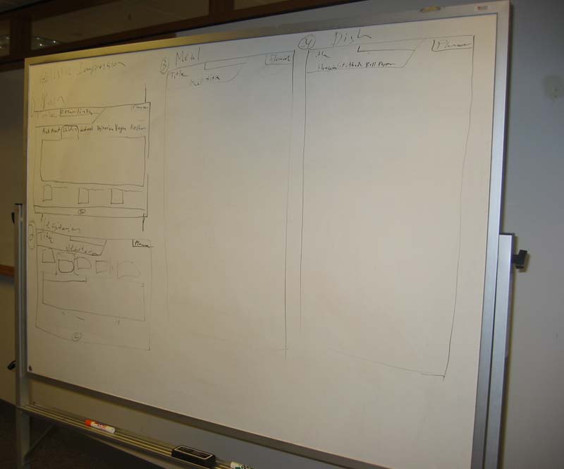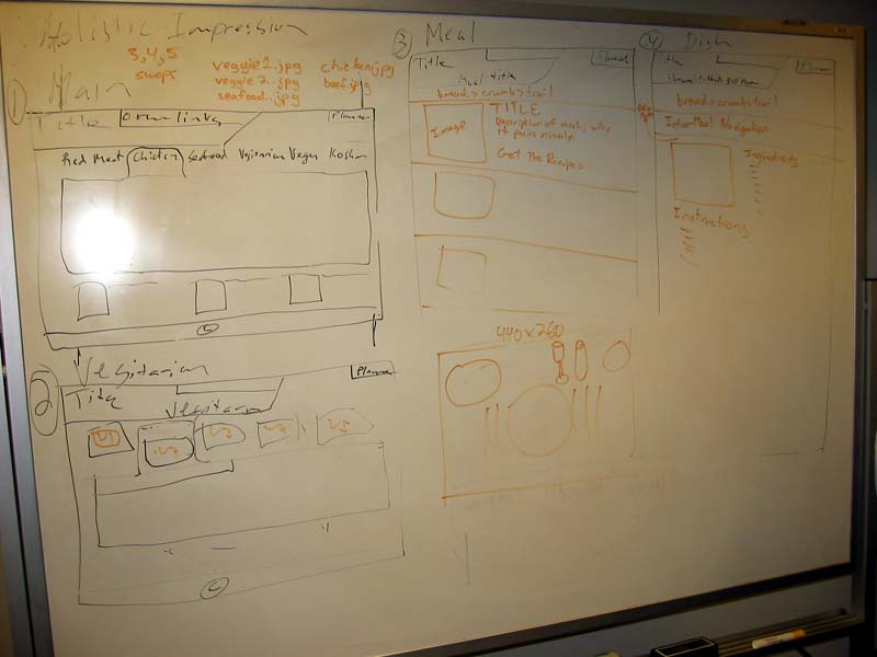 We decided to emphasize the appearance of the food. So rather than using textual links of navigation, we employed the use of food images to drive the site. Our pages is dependent on the scenario of Bertha and Martha as she goes on a search for an elegant dish.