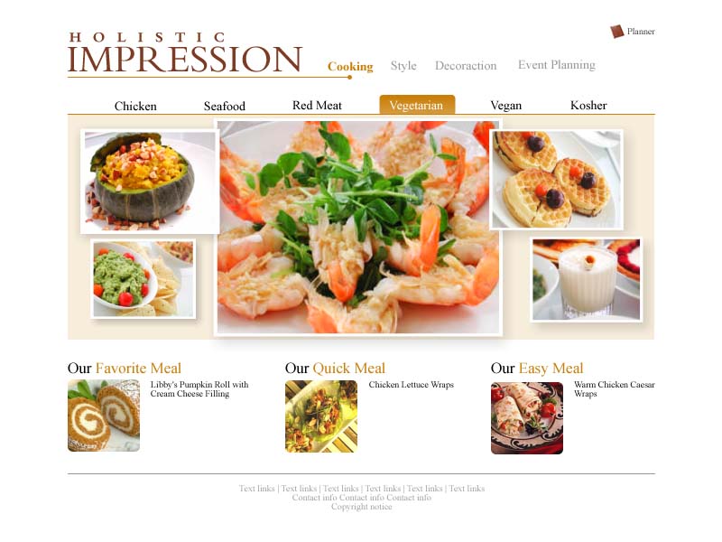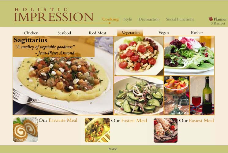 Design06 Refined DesignWe went through several implementations of our refined sketches. However, we faced the challenge of presenting the user with a meal. With a variety of images, we discovered that it was necessary to emphasize the cohesiveness of a meal with separate images. Ultimately, we chose to integrate all these images into a single meal. The integration of all dishes offered a method of presentation and most importantly, it was impressive. First IterationSecond Iteration |