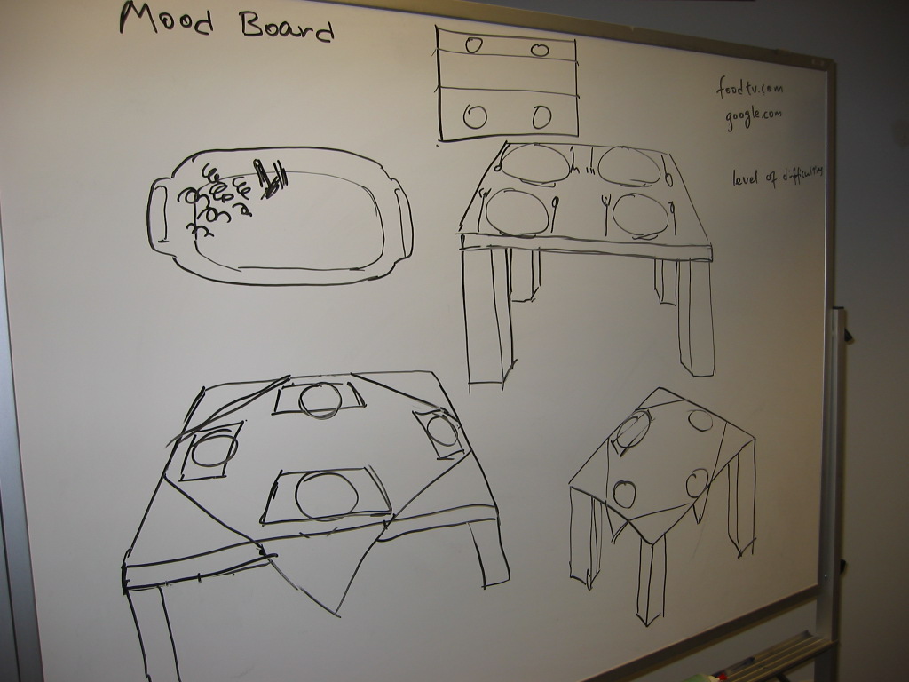 Based on user research, we determined that the first impression of food was important. In the mood board, we took images of food pieces and attached them to a place setting. By including such appetizing images, we highlight how important these images are to our target users. Our user research showed that people often selected recipes based on the accompanying photograph.